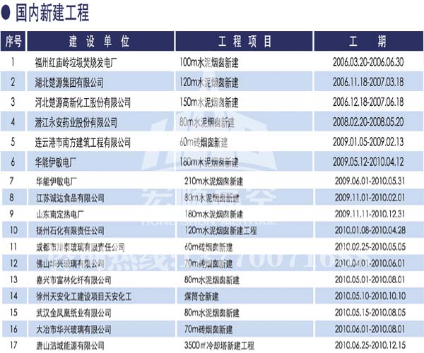宏順建設(shè)工程有限公司是國家批準(zhǔn)成立的專業(yè)高空作業(yè)企業(yè):承攬過(國內(nèi).國外)煙囪新建、煙囪防腐、磚煙囪新建、煙囪改造、煙囪維修、煙囪脫硫防腐、煙囪拆除加高、煙囪滑膜等高空作業(yè)工程。具有“不搭腳手架 、 不需要停產(chǎn)”施工特點(diǎn)。